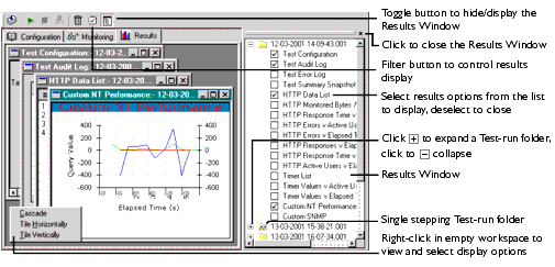 Use the Results Window to select the results you want to view in the workspace of the Test Pane. You can reposition the Results Window by floating it over the Main Window to give yourself more room for results display, or close it once you have selected the results options you want to view.